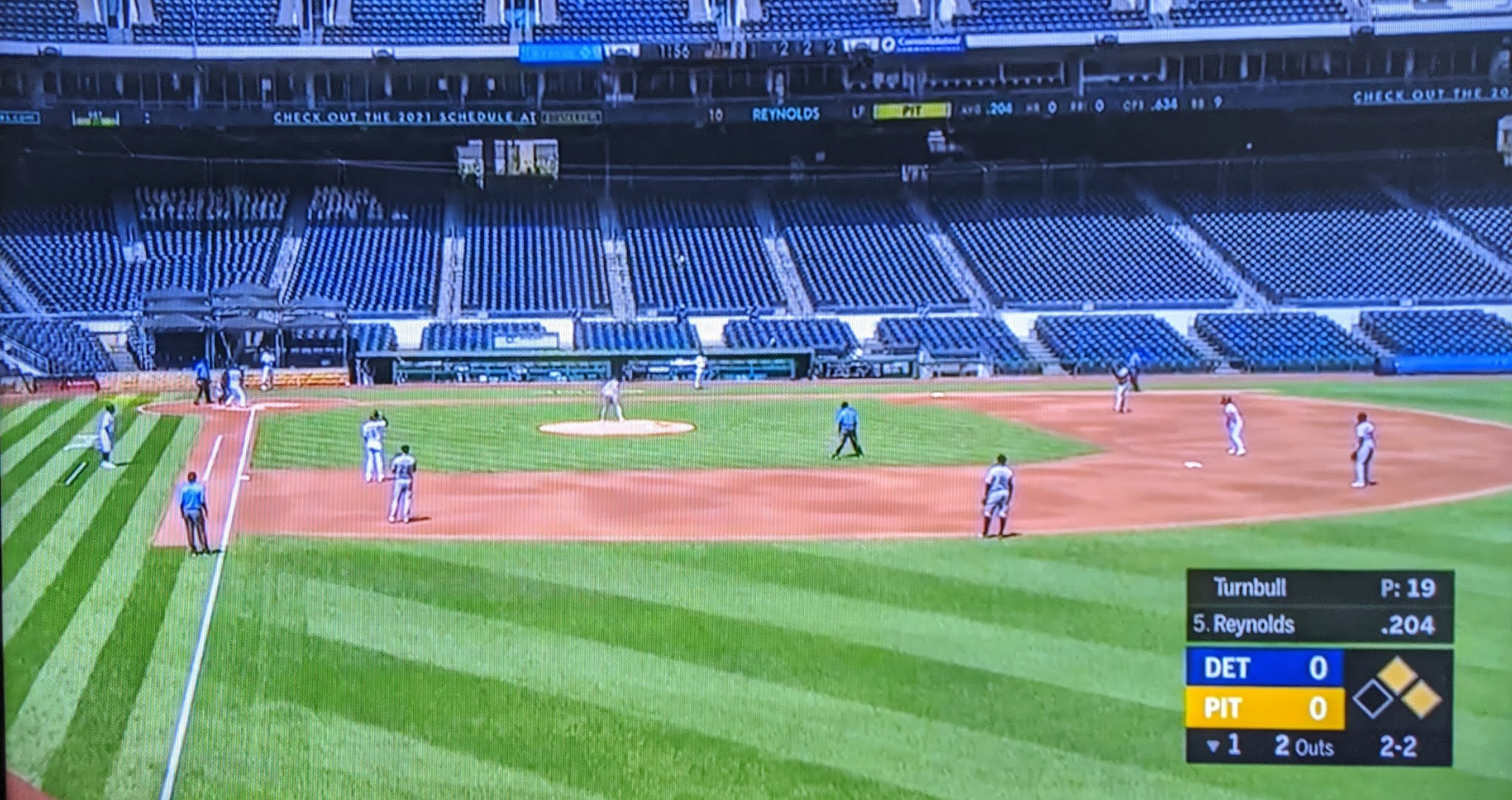 It looks like the Pirates have one advertisement in the outfield, from PNC, their ballpark’s naming sponsor. Other than that, they’ve got nothing in the seats.